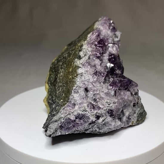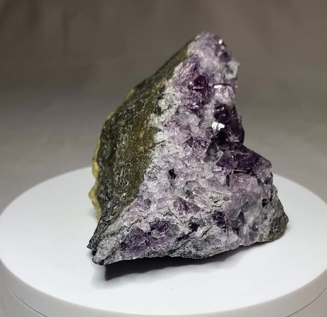 The Frazer's Hush mine, like the Rogerley Mine also in County Durham, began operations in the 1970s, finally closing in 1999. The mine is famous for its amethyst-coloured fluorite, like this piece here. It is, admittedly, difficult to capture the beauty of this fluorite by photograph as the piece is even better in person. Looking closely, you will note the same twinning commonly displayed from the Rogerley Mine. Of course the piece displays terrific fluorescence under ultraviolet light. The mine, interestingly, may have taken its name from a nearby hushing (hydraulic mining) site dating from medieval times! Ex Garry Kolodinsky collection. From: Frazer's Hush Mine, Weardale, County Durham, England. Dimensions: 7 cm x 8 cm