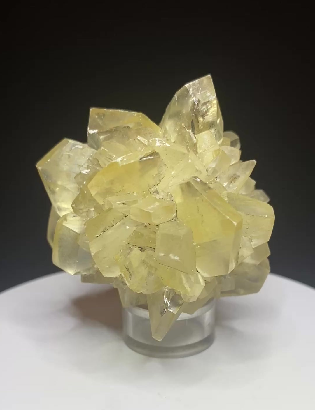 Canada is blessed with several unique selenite occurrences (see "Gypsum in Canada" by Mark Mauthner in Rocks & Minerals, 81:1, pages 62-66, published in 2006). Perhaps our most famous gypsum locality, though, is the Red River Floodway outside of Winnipeg. Impressive clusters and rosettes of yellow and amber-coloured selenite has been recovered from the muddy glacial sediments there. This specimen is typical of the locality where quality pieces are becoming exceedingly difficult to now find. Of course these have wonderful fluorescence...and phosphorescence too! From: Red River Floodway, Winnipeg, Manitoba. Dimensions: 5.5 cm x 5.5 cm
