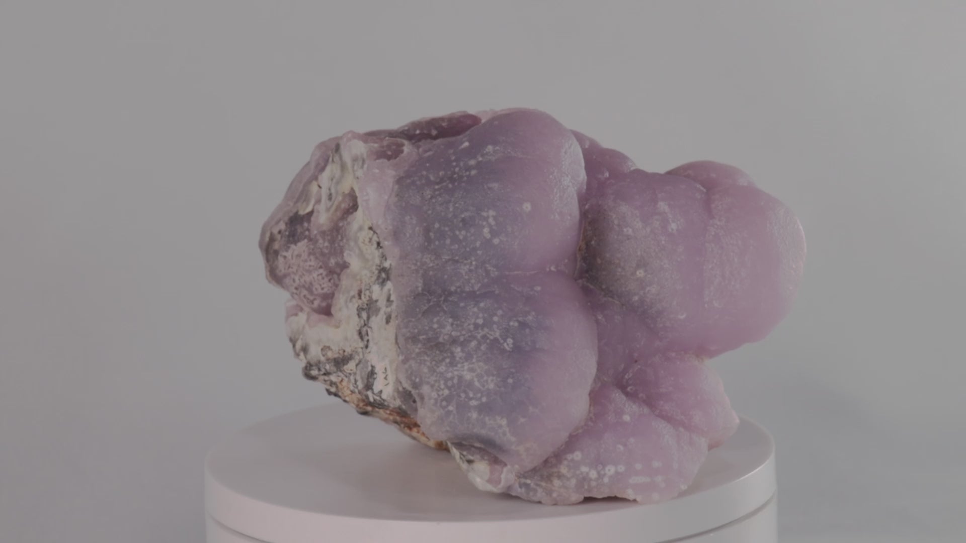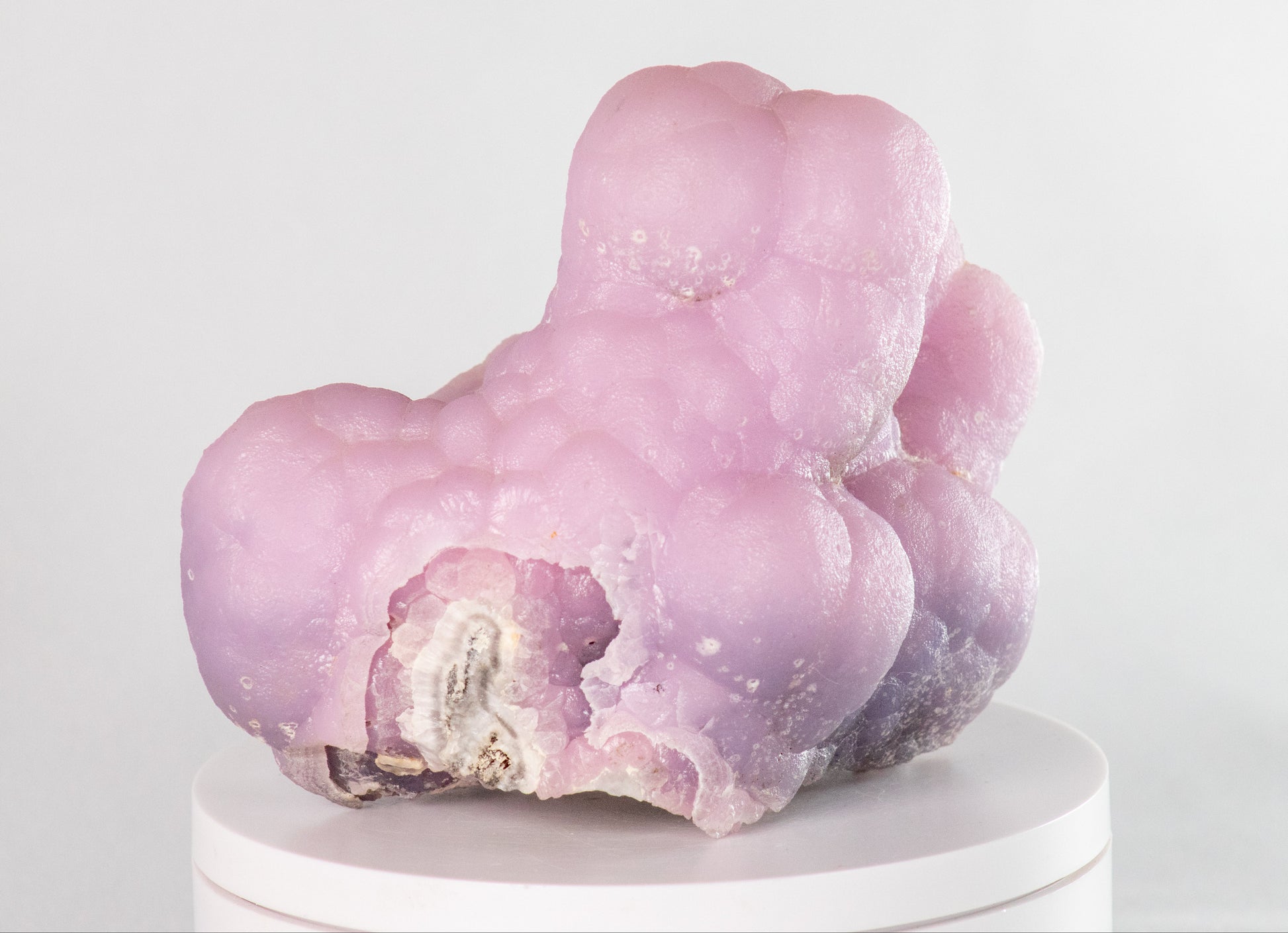 This beautiful, cabinet-sized smithsonite has been hidden away since Benny Fenn first started bringing these to market in the 1990s. Like many Choix pieces, this offering has a botryoidal form with a pleasing pink colour, almost looking like a pink, fluffy cloud. Luster is good with the one side of the specimen showing a contact though. Choix specimens of this size are difficult to come across today. Ex Mary & Gardner Miller collection (Missoula, Montana), Ex George Sutherland collection (Calgary, Alberta, Canada). From: El Refugio Mine, Choix, Sinoloa, Mexico. Dimensions: 7.5 cm x 9 cm x 11.5 cm