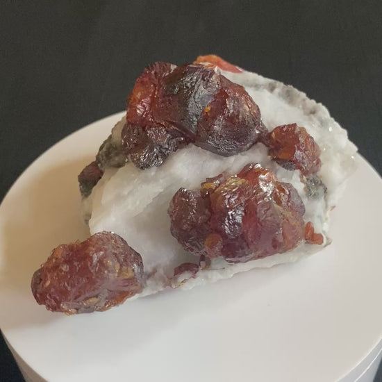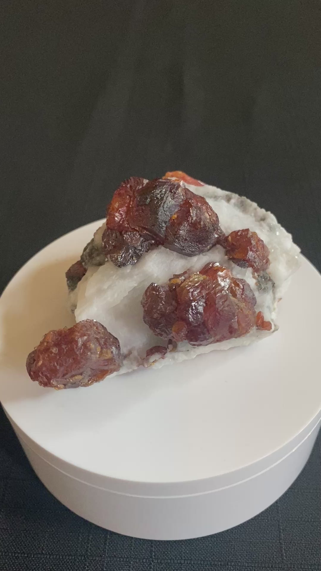If you think all sulphides are dull and boring then you probably have not see a sphalerite (zinc sulphide) from the Las Manforas Mine in Spain. This is easily Europe's best locality for top-quality sphalerite, some of which are gemmy enough to be faceted into gemstones of impressive colour saturation and size. Our specimen shows several complex sphalerite crystals on calcite. My photos are not doing this piece justice as the colour is very nice, reminiscent of strawberry jam when backlit! While not facetable, these crystals are certainly translucent and of large size (up to 3.5cm); very showy indeed! The crystals were exposed from their calcite host rock by etching with acid (a common practice) and there is no damage to any of the faces. Ex Brenton Mah collection. From Las Manforas Mine (Alivia Mine), Camaleno, Cantabria, Spain. . Dimensions: 3.5 cm x 6 cm x 9.5 cm